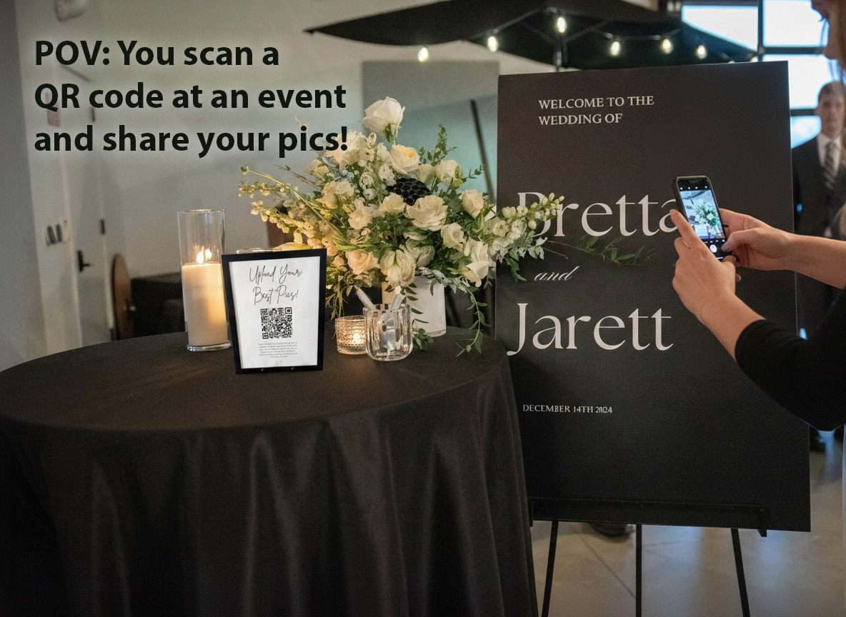 Print or display your unique QR code at your event. Guests scan to instantly access the upload page.